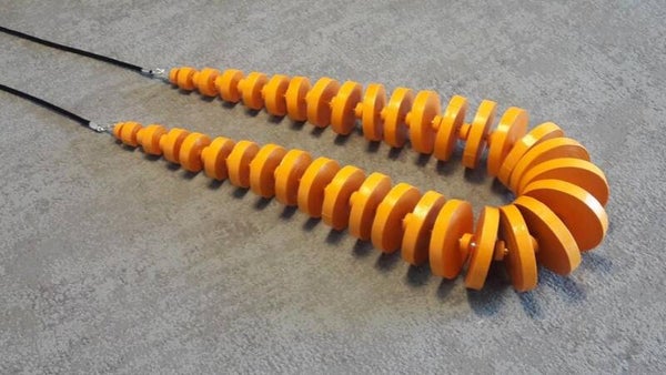 Ici le collier est orange autant pour les grandes "perles" que pour les "perles" intermédiaires. Pour le multicolore chaque grande "perle" est suivie de sa couleur en "perles" intermédiaire.