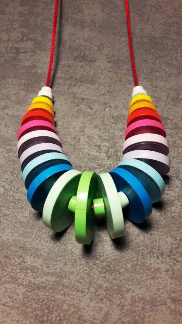 Description : Collier taille unique monté sur lacet. Il est composé de 83 "perles" rondes de taille différentes. Pour le multicolore, seulement 43 "perles" dans des couleurs et tailles différentes (Voir photo).