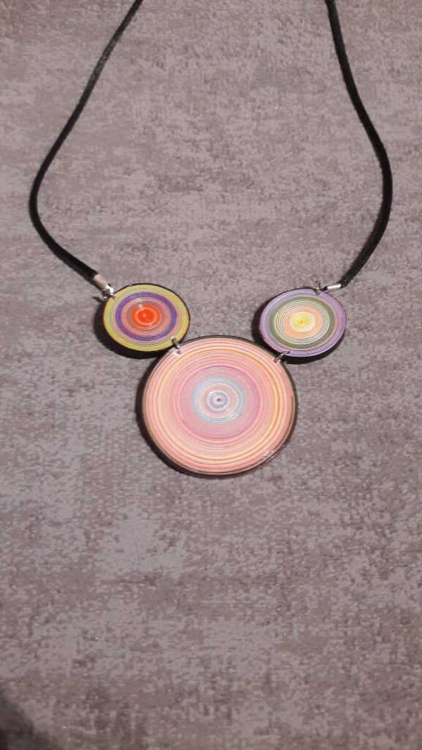 Description : Le collier est composé de 3 "perles" rondes de tailles différentes. Il est réalisé avec des bout de fil restant.