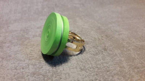 La bague est composée de 3 "perles" rondes, 2 de couleur égales et de même épaisseur. La troisième est plus petite et plus fine et restera blanche.