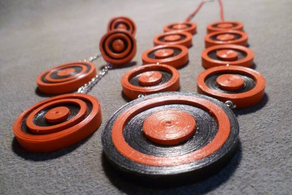 Le collier est composé de 9 "perles" rondes de 2 épaisseurs différentes. La couleur de base est le noir, c'est à vous de choisir l'autre couleur. Les perles sont fixées entre elles par des pitons à visser. Le haut du collier est terminé par un lacet de couleur.