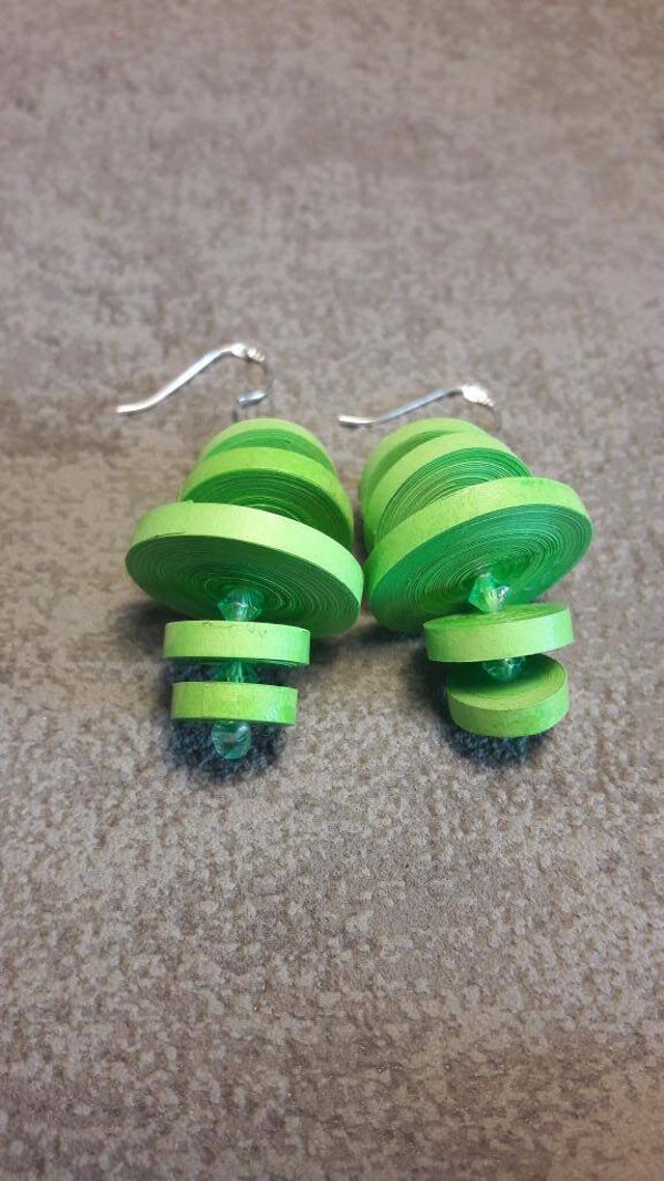 Les boucles d'oreilles sont composées d'une série de 5 "perles" rondes de taille différente. Les "perles" se succèdent de la plus petite à la plus grande et inversément. Chaque "perle" est séparée par une perle de rocaille.