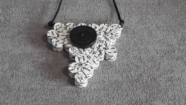 Description : Le pendentif monté sur lacet noir, est composé de 26 "perles" rondes identiques, recouvertes de Décopatch blanc avec des écritures en noires. Et d'une "perle" ronde noire qui vient surplombée le pendentif pour le finir. Son épaisseur est de 15mm.