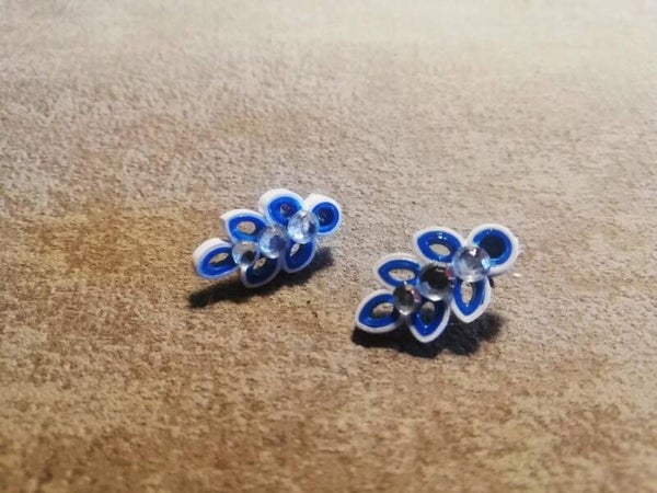 La Clou : composées de 6 "perles" dont 5 "perles" pétales et une ronde. 3 strass blanc sont apposés sur le dessus. Son épaisseur est de 3mm.