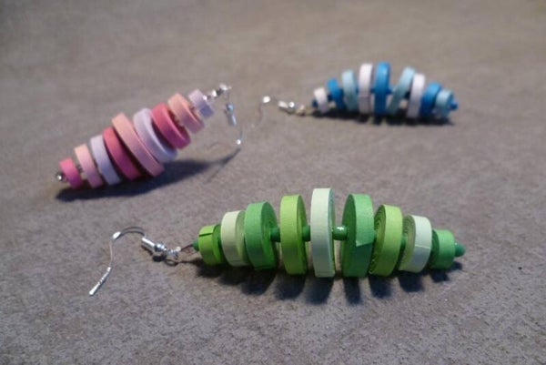 Description : Les boucles d'oreilles sont composées d'une série de 9 "perles" rondes de taille et de couleur différentes. Les "perles" se succèdent une clair, une foncée, de la plus petite à la plus grande et inversément. Chaque "perle" est séparée par une perle de rocaille.
