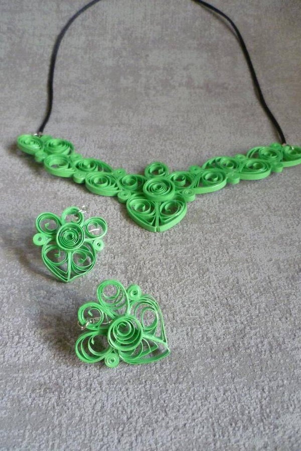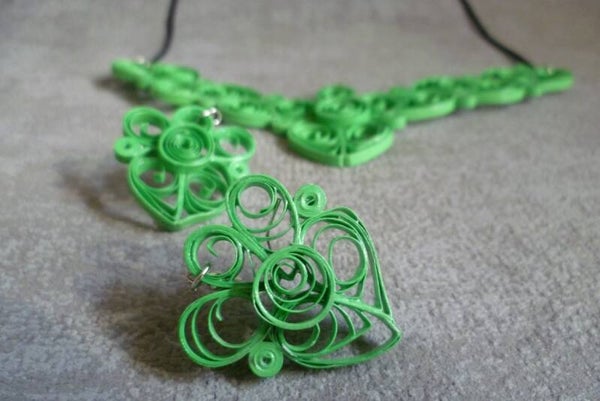 Description : Le collier est composé d'une déclinaison de quilling de formes et de tailles différentes. Son épaisseur est de 3mm.
